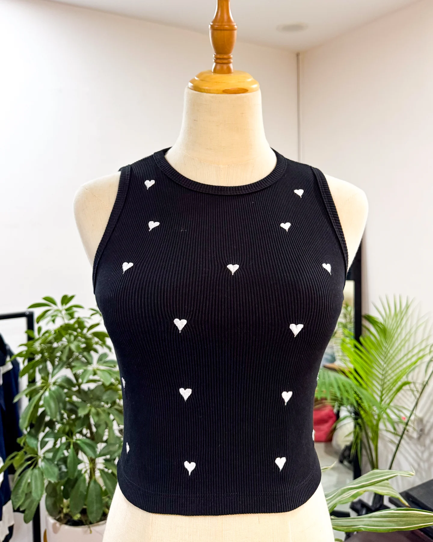 Black tank with white heart